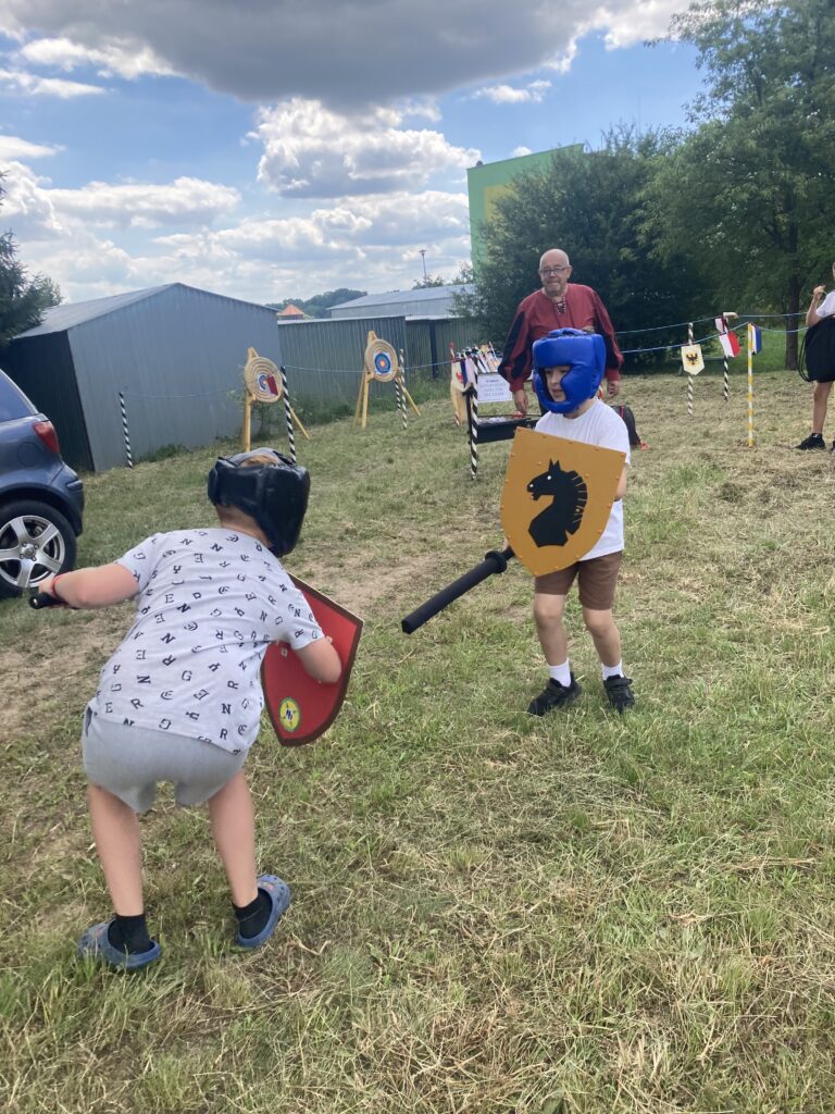 W ramach tego cyklu najmłodsi mieszkańcy Debrzna mogli przenieść się do czasów średniowiecza. Zorganizowaliśmy gry rycerskie, takie jak slalom na koniku z mieczem, strzelanie z łuku do tarczy czy bezpieczne pojedynki z wykorzystaniem piankowych mieczy i ochronnych hełmów. Była to nie tylko świetna zabawa, ale również okazja do rozwijania zręczności i wyobraźni.