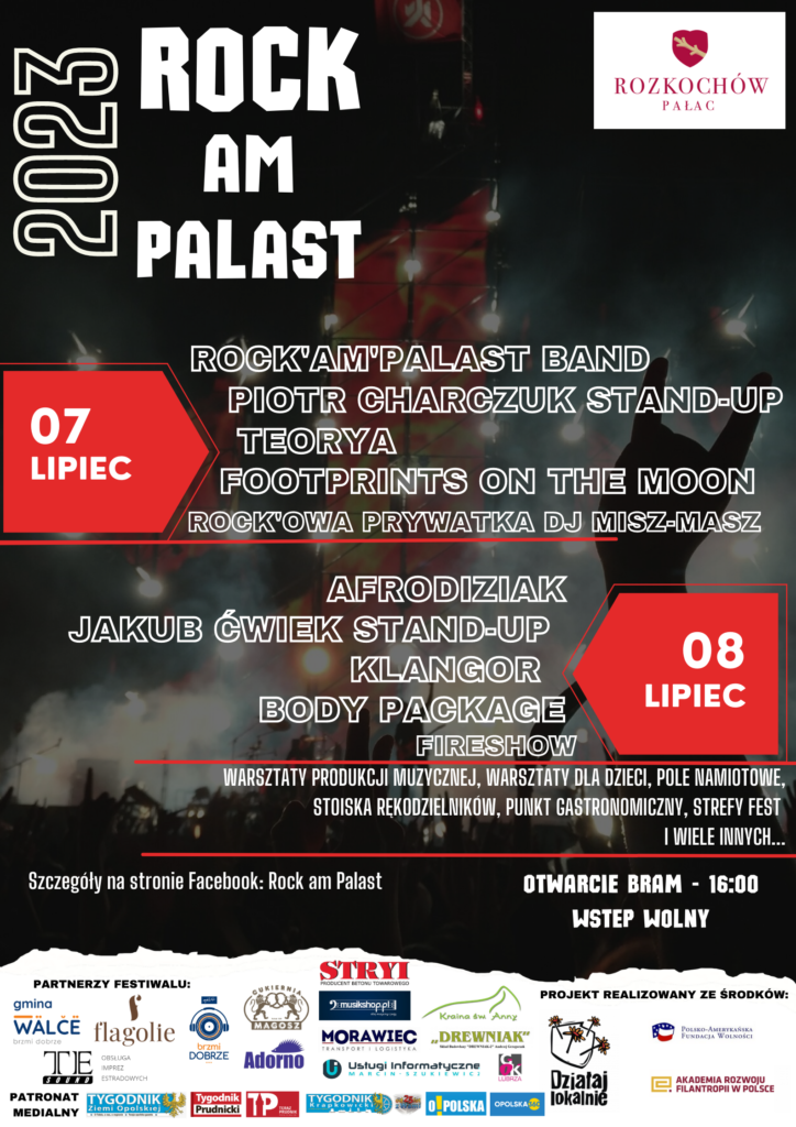Grupa nieformalna Projekt: Rock am Palast wraz z organizatorem Fundacją Pałacu Rozkochów – Pomiędzy zapraszają na drugą edycję niszowego festiwalu rockowego Rock am Palast. Festiwal odbędzie się w dniach 7 – 8 lipca 2023 w Pałacu w Rozkochowie. Wydarzenie jest finansowane z Programu „Działaj Lokalnie”.